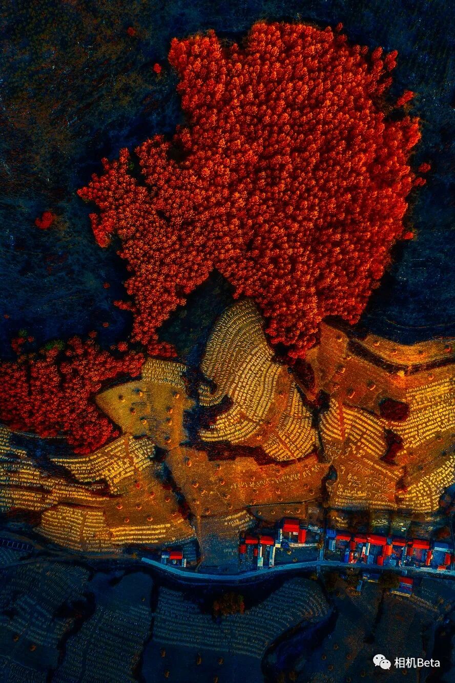 中国摄影师沈阳云河的《大地之“花”》定格了辽宁本溪大峡谷的惊鸿一瞥,获年度十佳图片奖项。深秋朝阳把山梁上的杉树林树梢“染红”,杉树林在一块块黄色农田、一间间红色农房映衬下犹如红色之花盛开在大地之上。《国家地理杂志》摄影部助理总编辑Anne Farrar被这幅景象震撼:“一个由红、黄和金几种色彩共同描绘的惊艳生物群,需要观众花费一些时间来品读其背后的故事。”