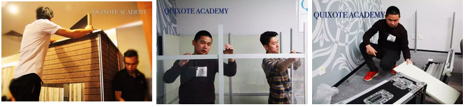 因此QUIXOTE(吉诃德学院)的教学设备都是按真实职业需要配置的,杜绝一切学员机,练习机。老师们上课不会只讲自己的故事和趣闻,要讲干货,要带学生练。而且我们只选用高端圆桌会议室作为教室,每间教室都有是真实的同传隔间,总之做同传的时候是什么样,我们学的时候就什么样。我们拒绝其他机构使用简陋练习机的做法,要给同学们最舒适的学习环境。