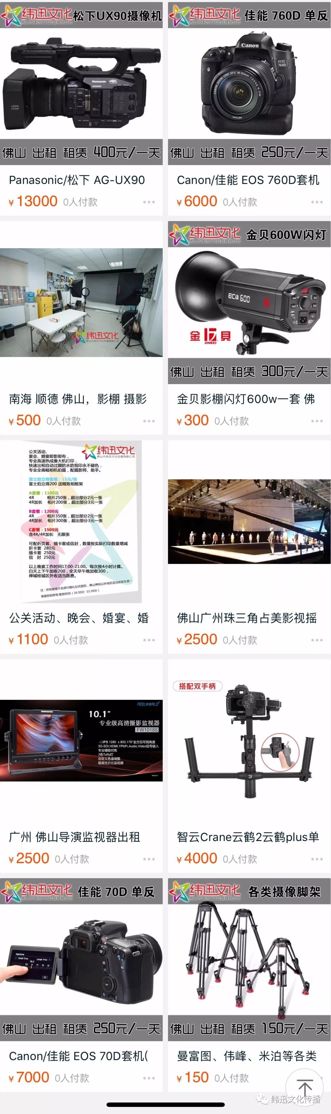 我们知道有些器材,不是你经常使用的,因此你没有必要购买他,而当你想用到他们的时候,纬迅文化影视器材租赁,愿意为你寻找到最合适你的设备。纬迅文化希望每一个影视爱好者,都能使用到最优质的器材,从而制作出更杰出的作品。而且,在佛山本地,我们就可以为你解决问题。
