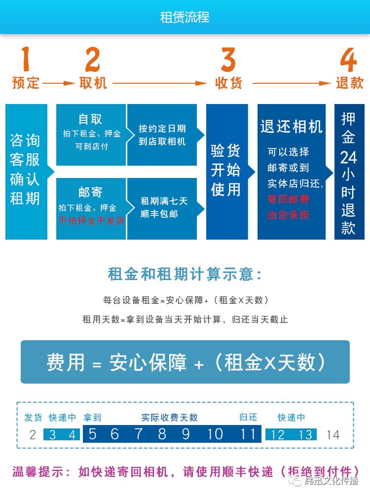 同时纬迅文化传播希望你能分享你的闲置器材给其他人使用,我们知道昂贵的器材对于你来说是最重要的,因此我们将实名认证每一个租客,并对租客进行严格的审查,确保您的设备安全,可追诉。
