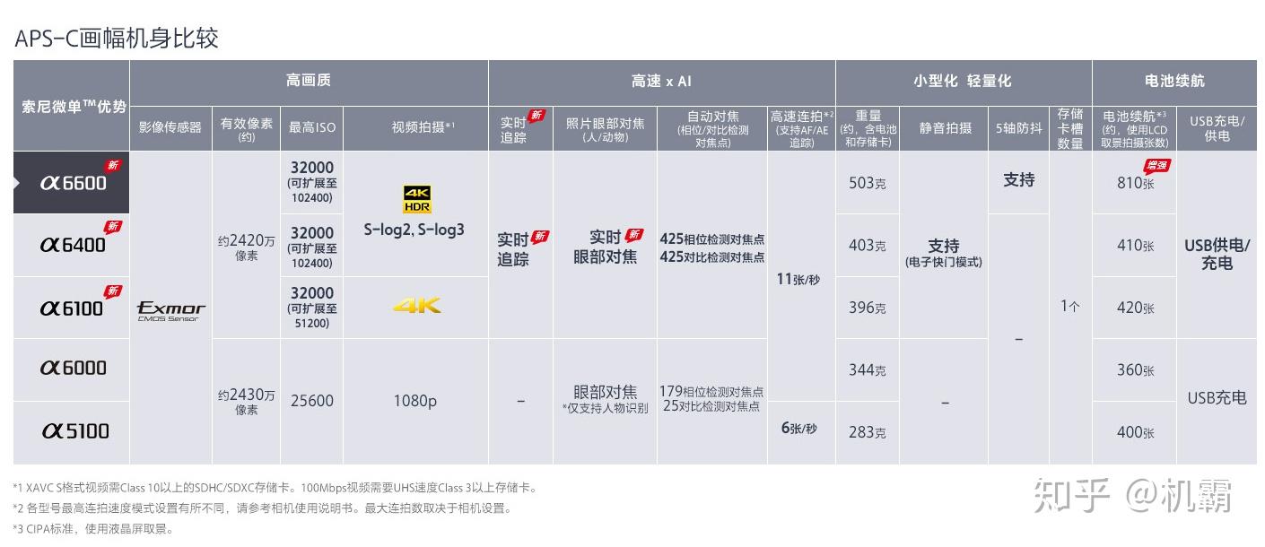 索尼的APS-C画幅就比较好介绍,毕竟α6000一系列到底,为什么不介绍α6300和α6500